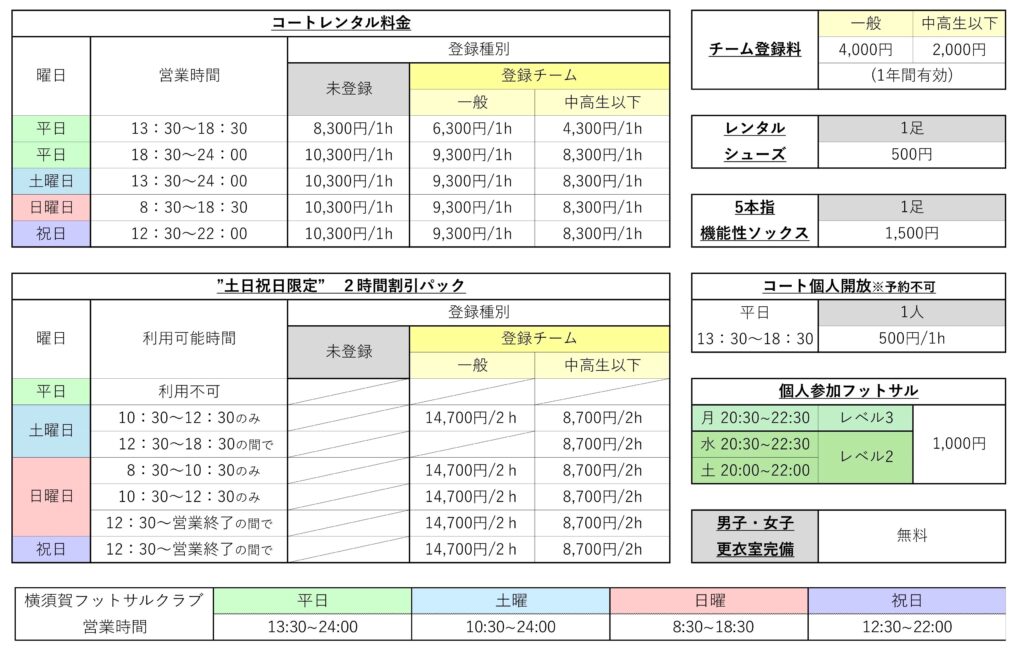 平日12:30~17:30までの間、当日空いているコートを 1名様1時間500円(税込)で開放しています。