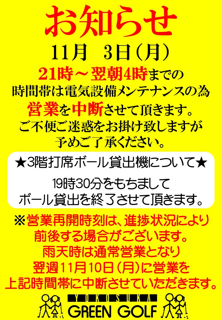 11月1日(土) 8時~16時 ヨシムラゴルフ